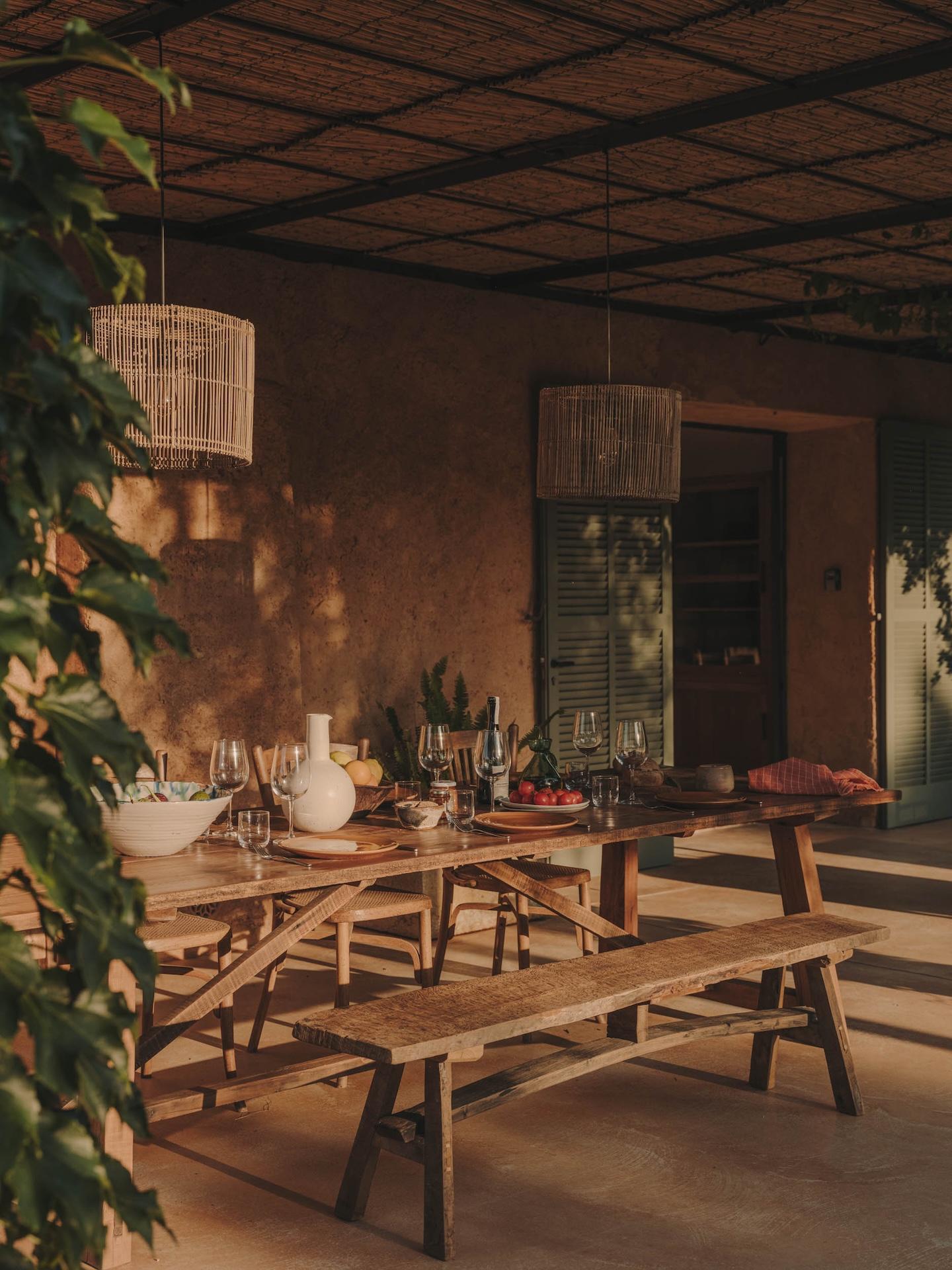Alle Inhalte und Ausstattungen des Hauses sind individuell in traditioneller und dennoch moderner Weise gestaltet: weiß gekalkte Wände, Sitzpolster aus schwerem kühlem Naturleinen, Beleuchtungen in individuell gefertigtem lokalem Gres-Stein und Terrakotta. Lampe Santa & Cole. A/C in allen Räumen.