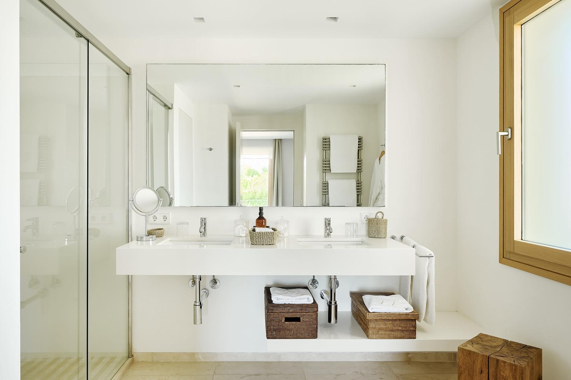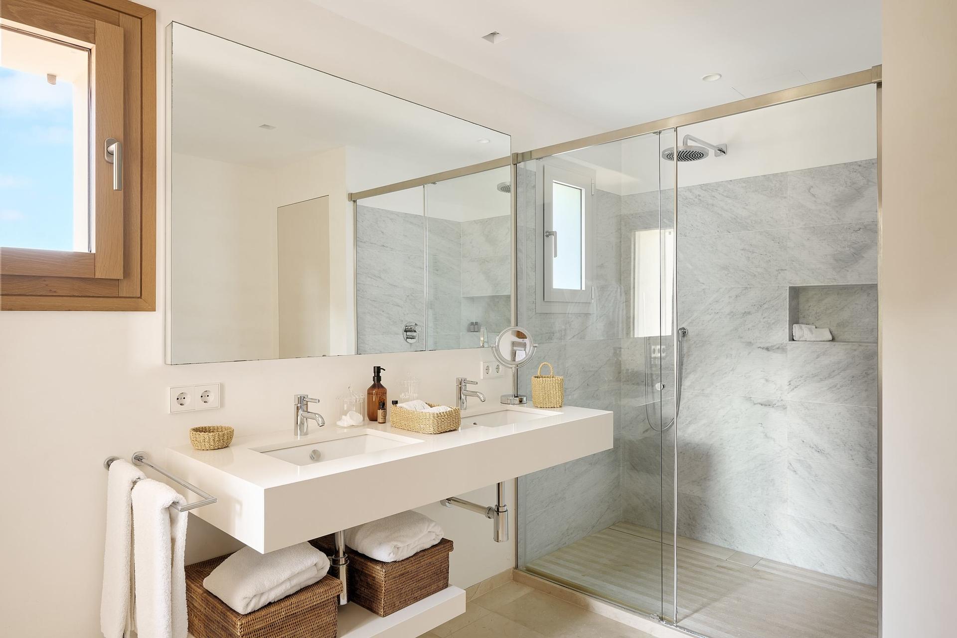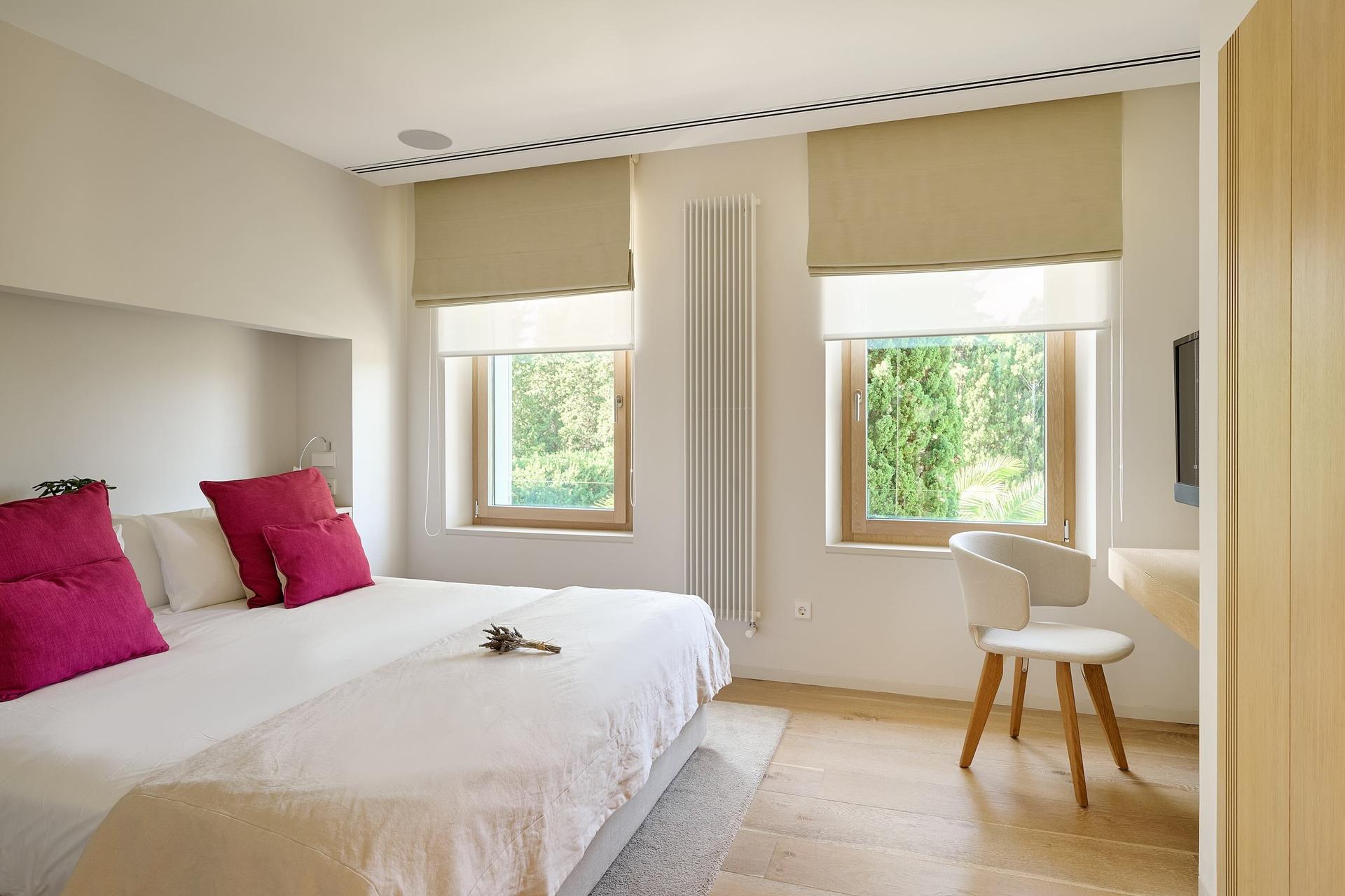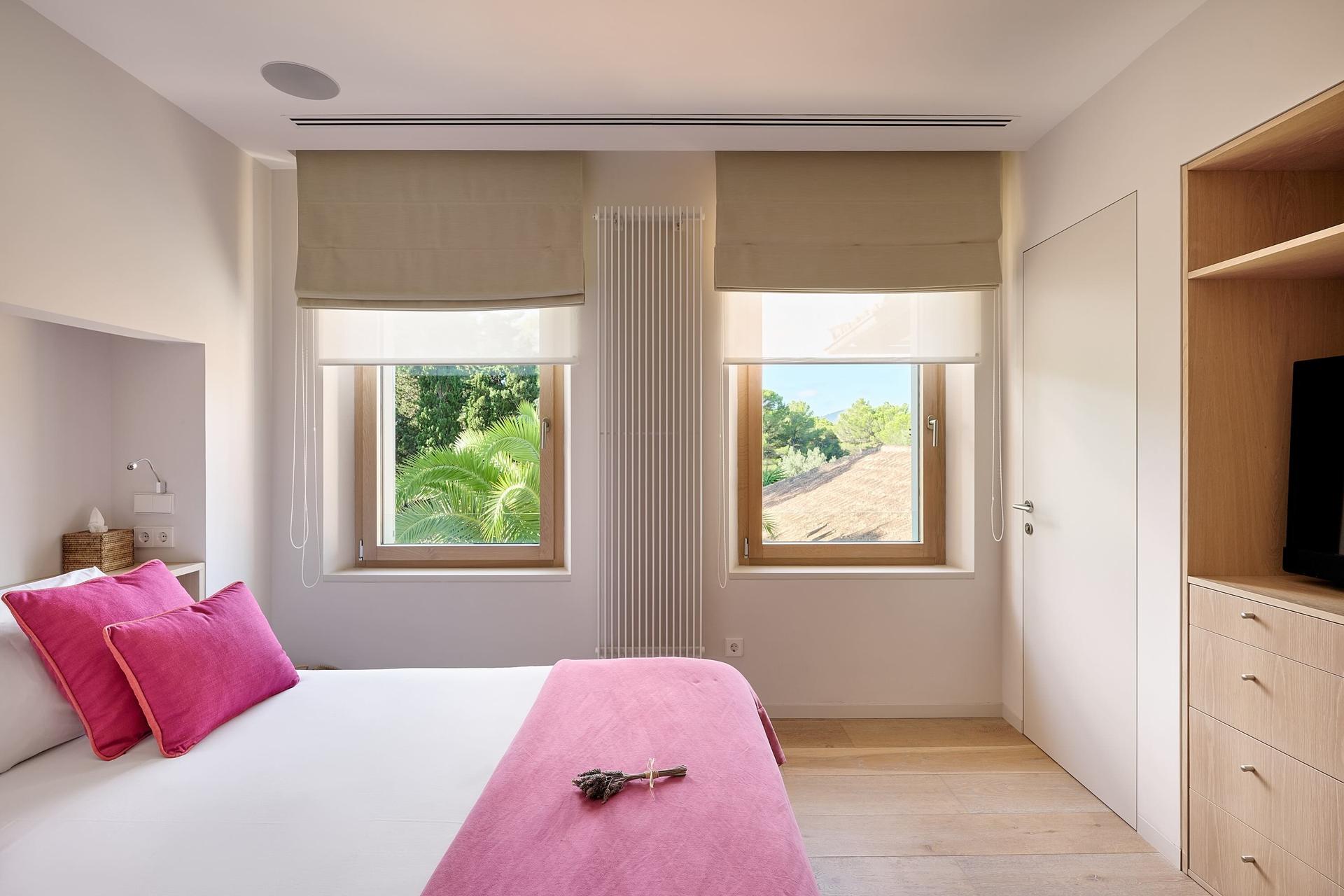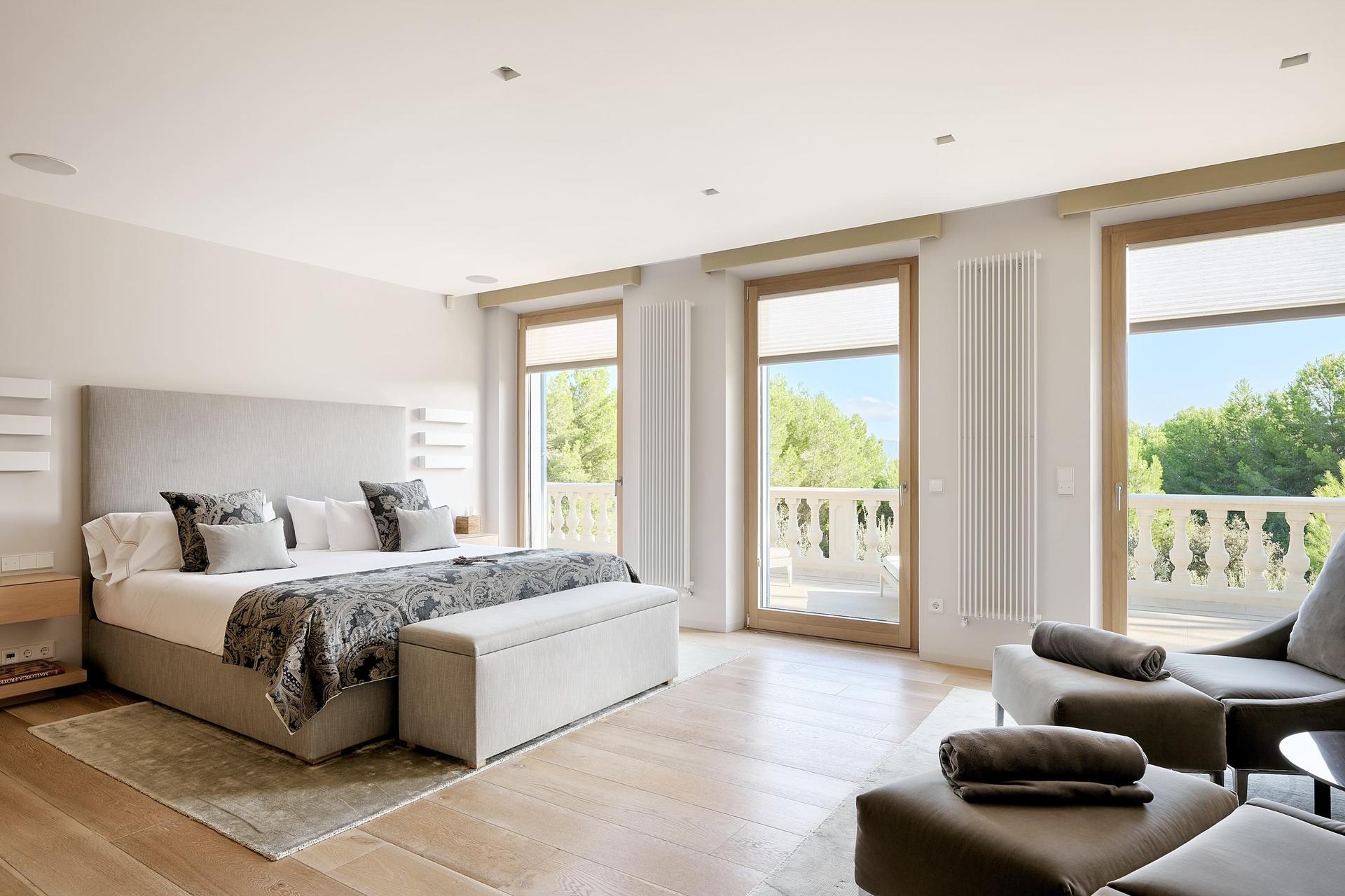 Materiales de alta calidad como pavimento de piedra y suelo de roble, combinados con tonos de color claro y muebles a medida. Los 6 dormitorios disponen de baño privado, con el dormitorio en el ático ideal para niños. La suite principal cuenta con vestidor, zona de salón privada y baño grande, así como una terraza privada con vistas al mar hacia Formentor.