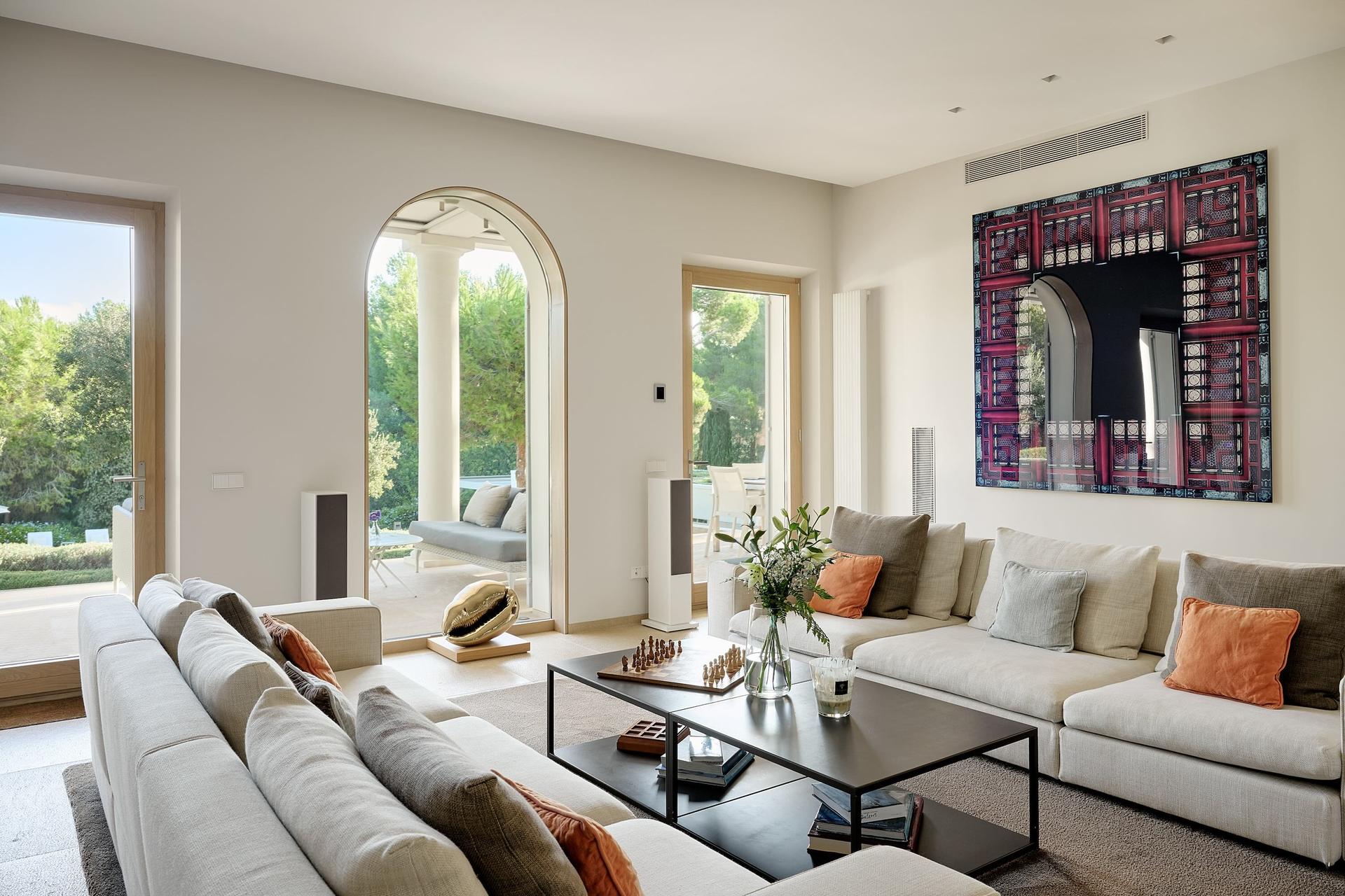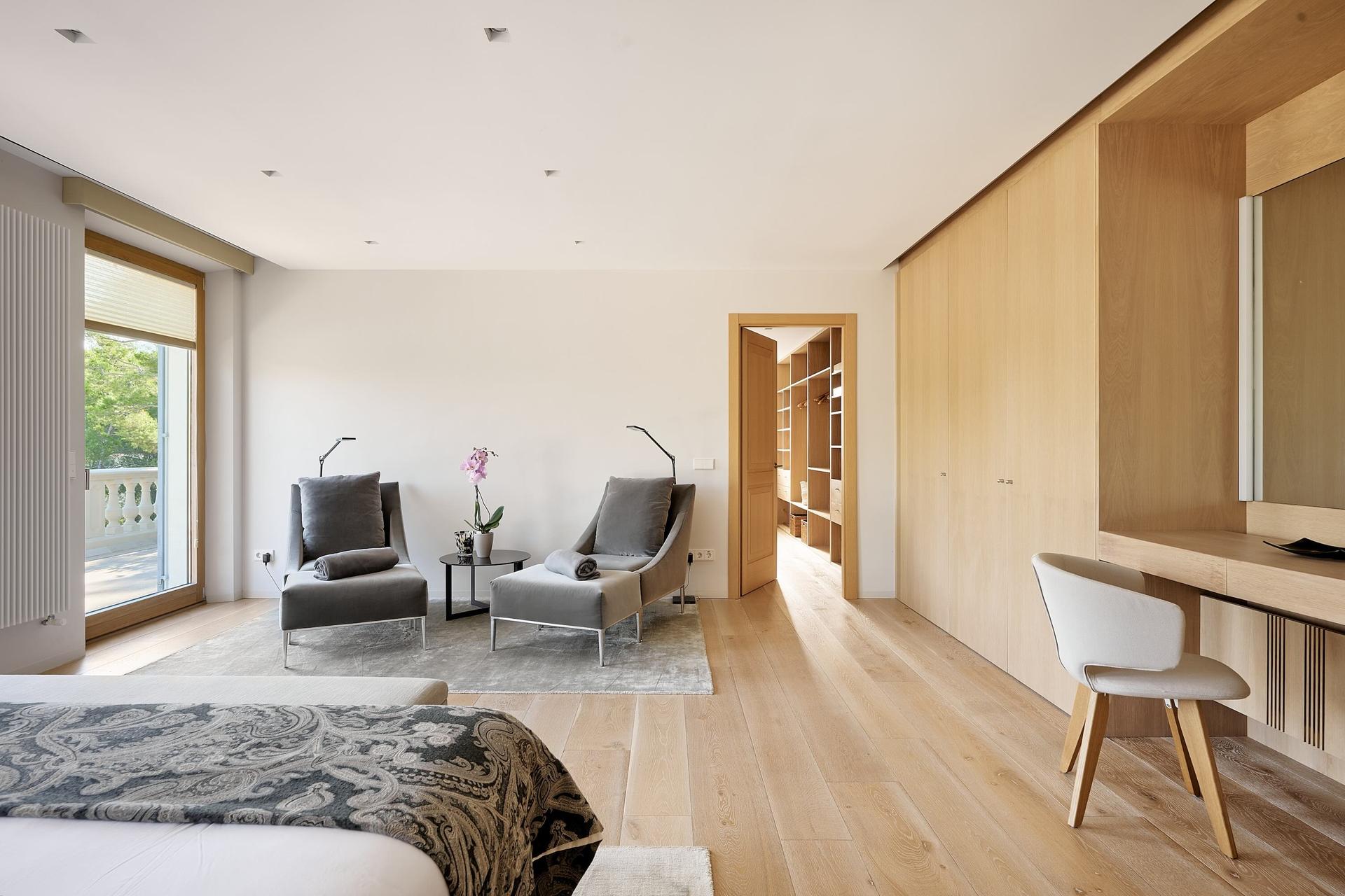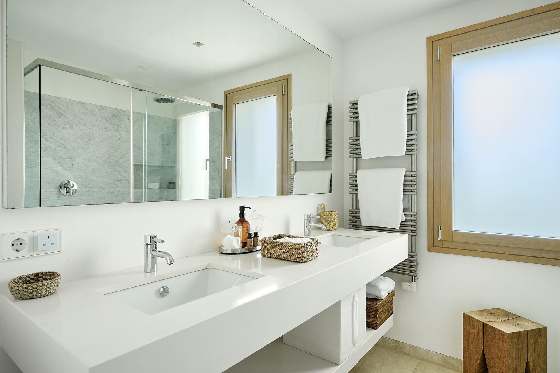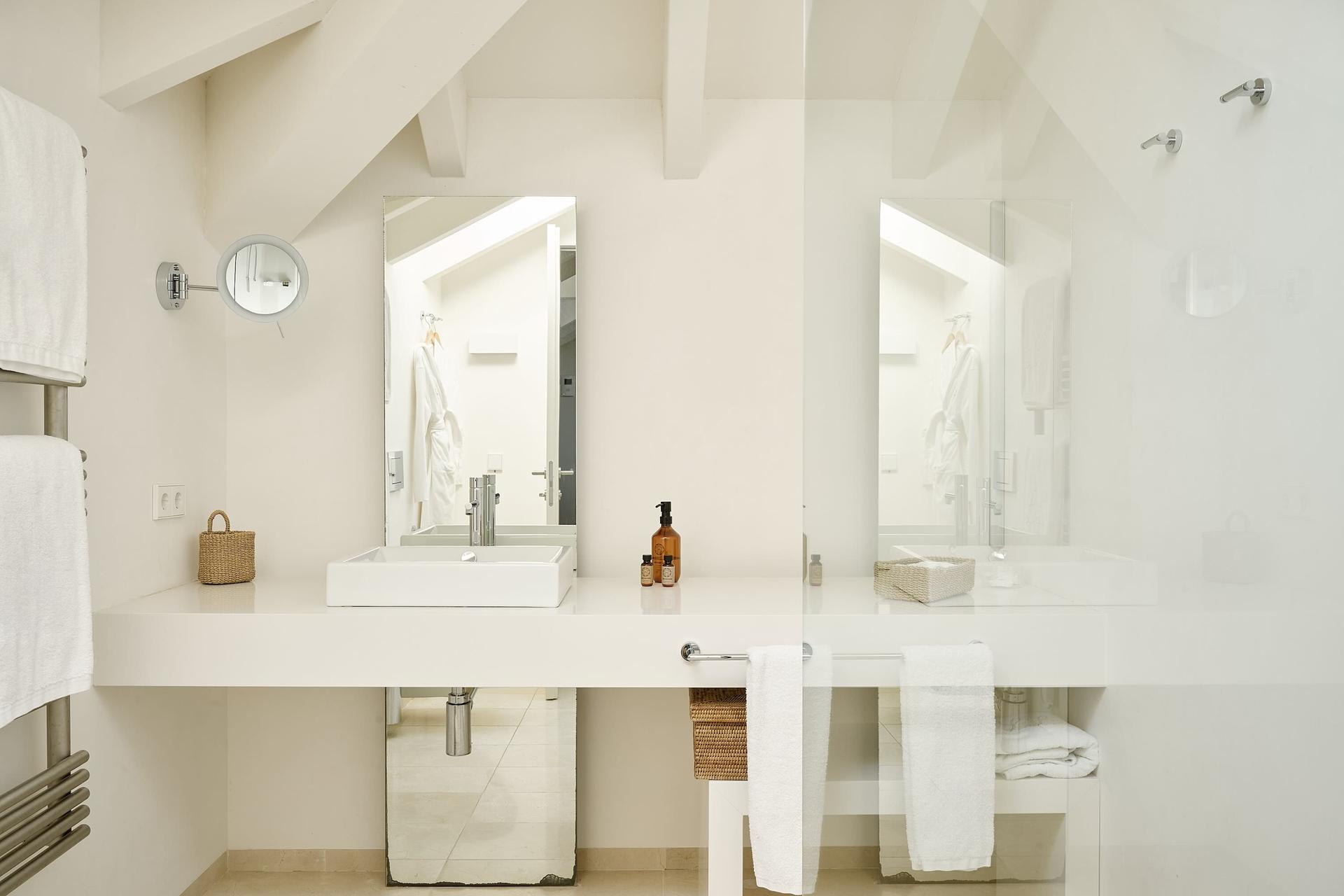 Materiales de alta calidad como pavimento de piedra y suelo de roble, combinados con tonos de color claro y muebles a medida. Los 6 dormitorios disponen de baño privado, con el dormitorio en el ático ideal para niños. La suite principal cuenta con vestidor, zona de salón privada y baño grande, así como una terraza privada con vistas al mar hacia Formentor.