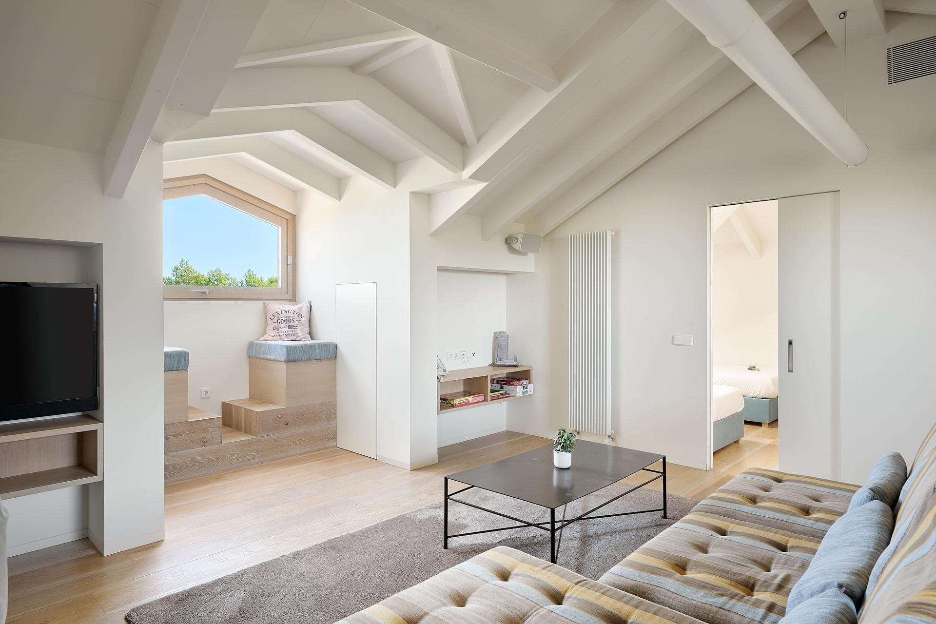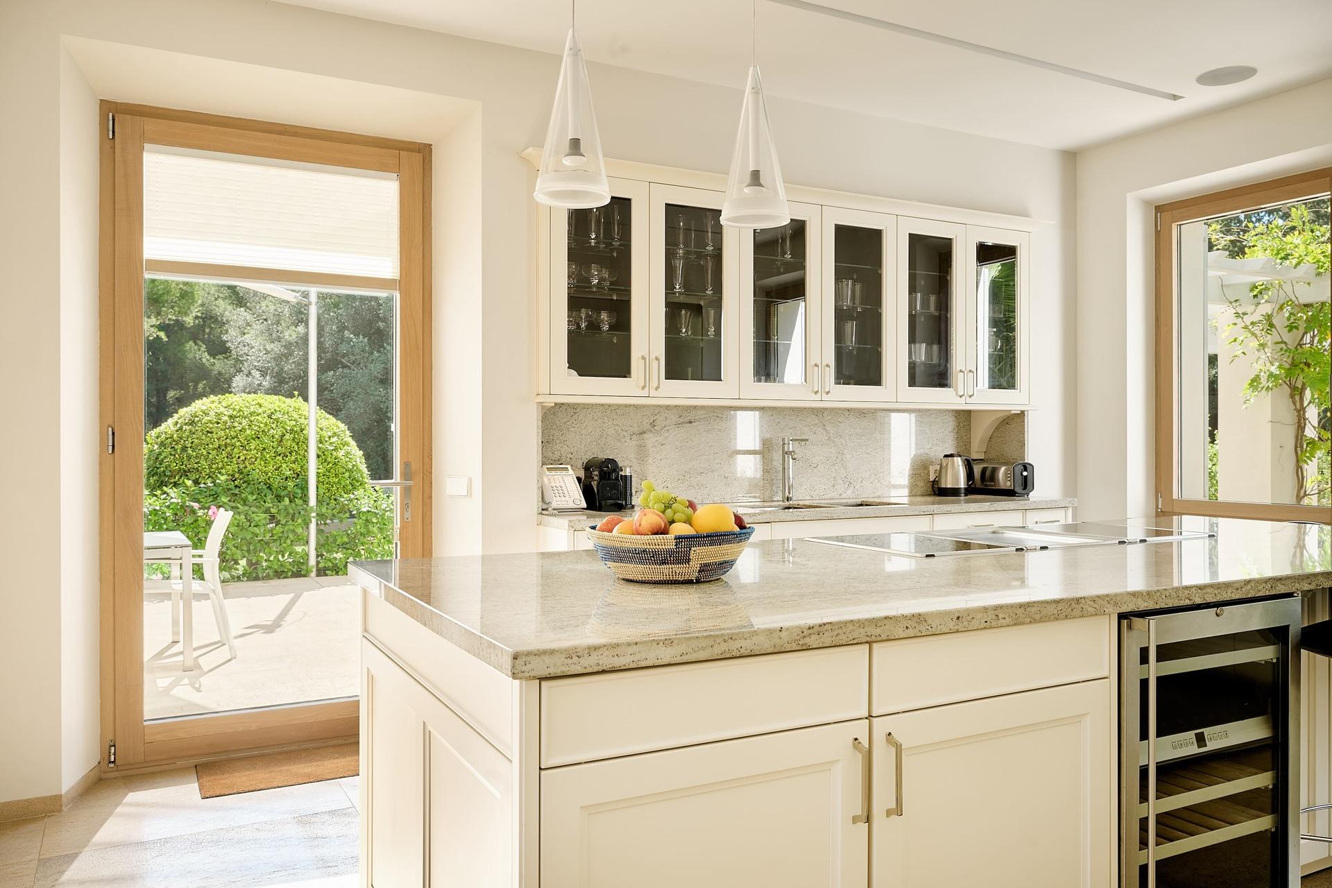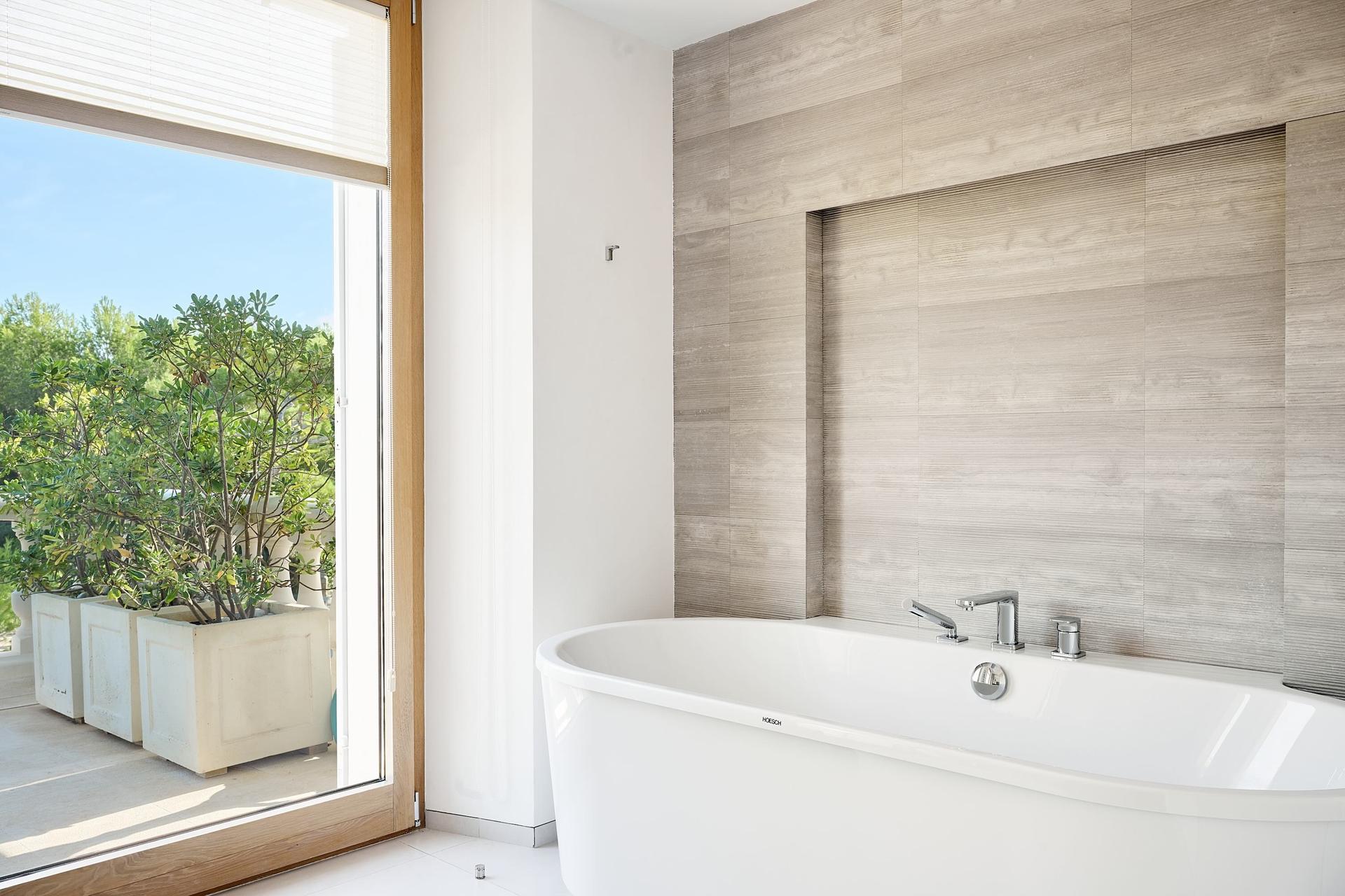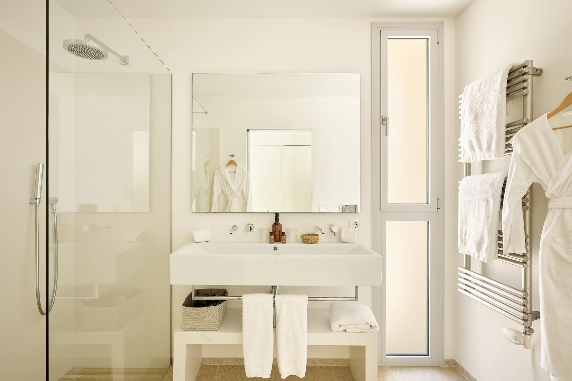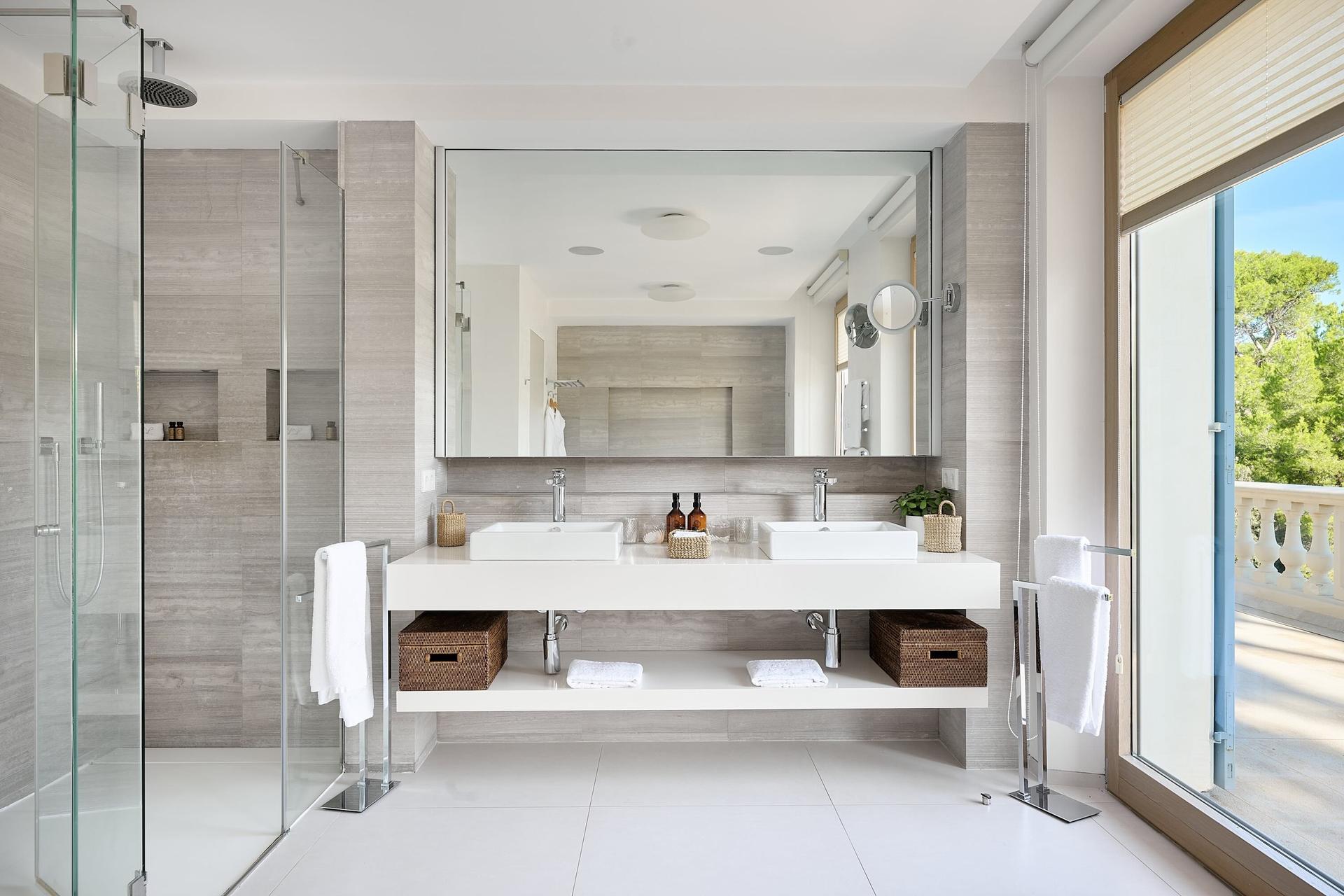 Materiales de alta calidad como pavimento de piedra y suelo de roble, combinados con tonos de color claro y muebles a medida. Los 6 dormitorios disponen de baño privado, con el dormitorio en el ático ideal para niños. La suite principal cuenta con vestidor, zona de salón privada y baño grande, así como una terraza privada con vistas al mar hacia Formentor.