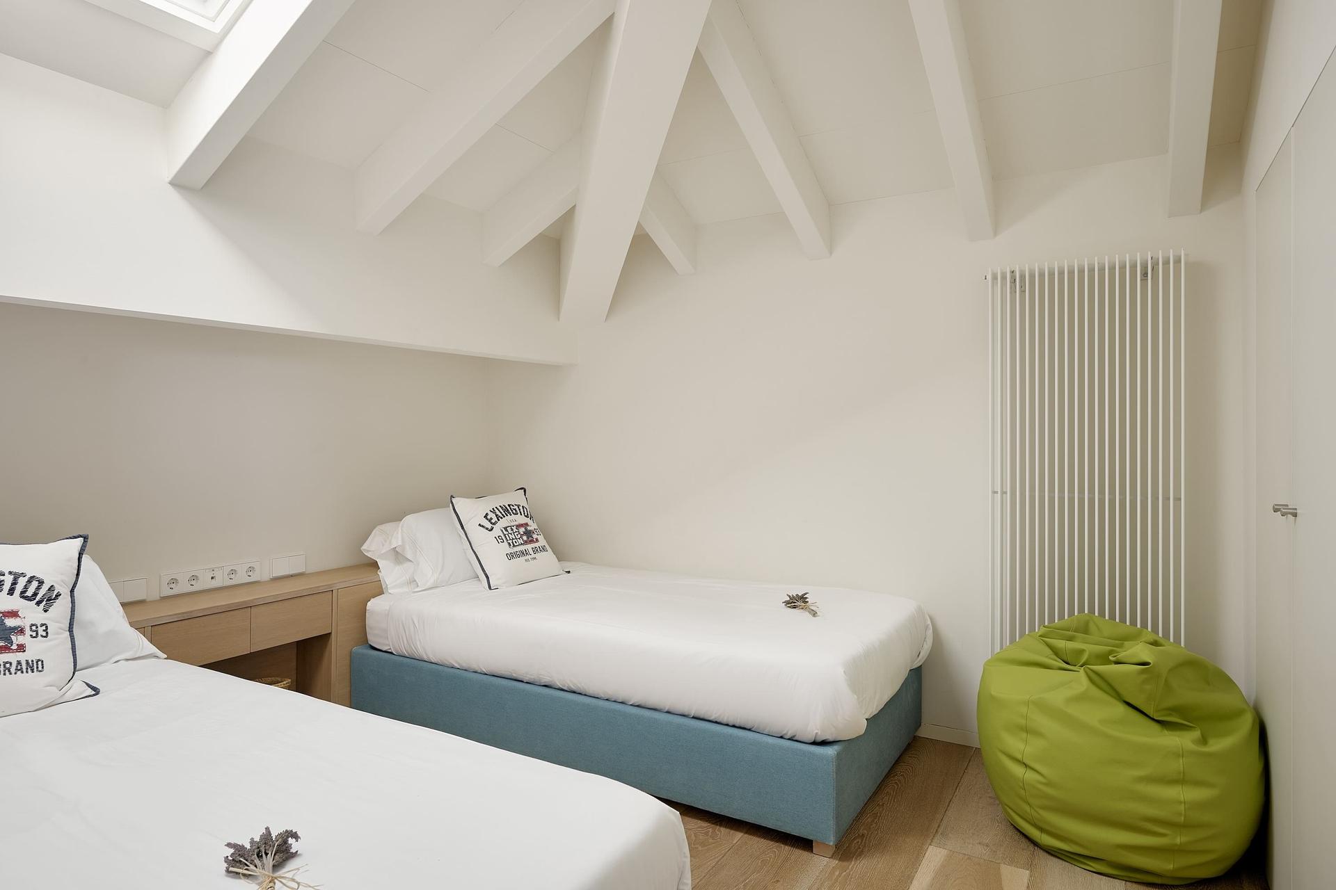 Dormitorio: 2 camas individuales - se convierte en una cama queen size, baño en-suite con ducha a ras del suelo, calefacción por suelo radiante en el baño, TV, caja fuerte