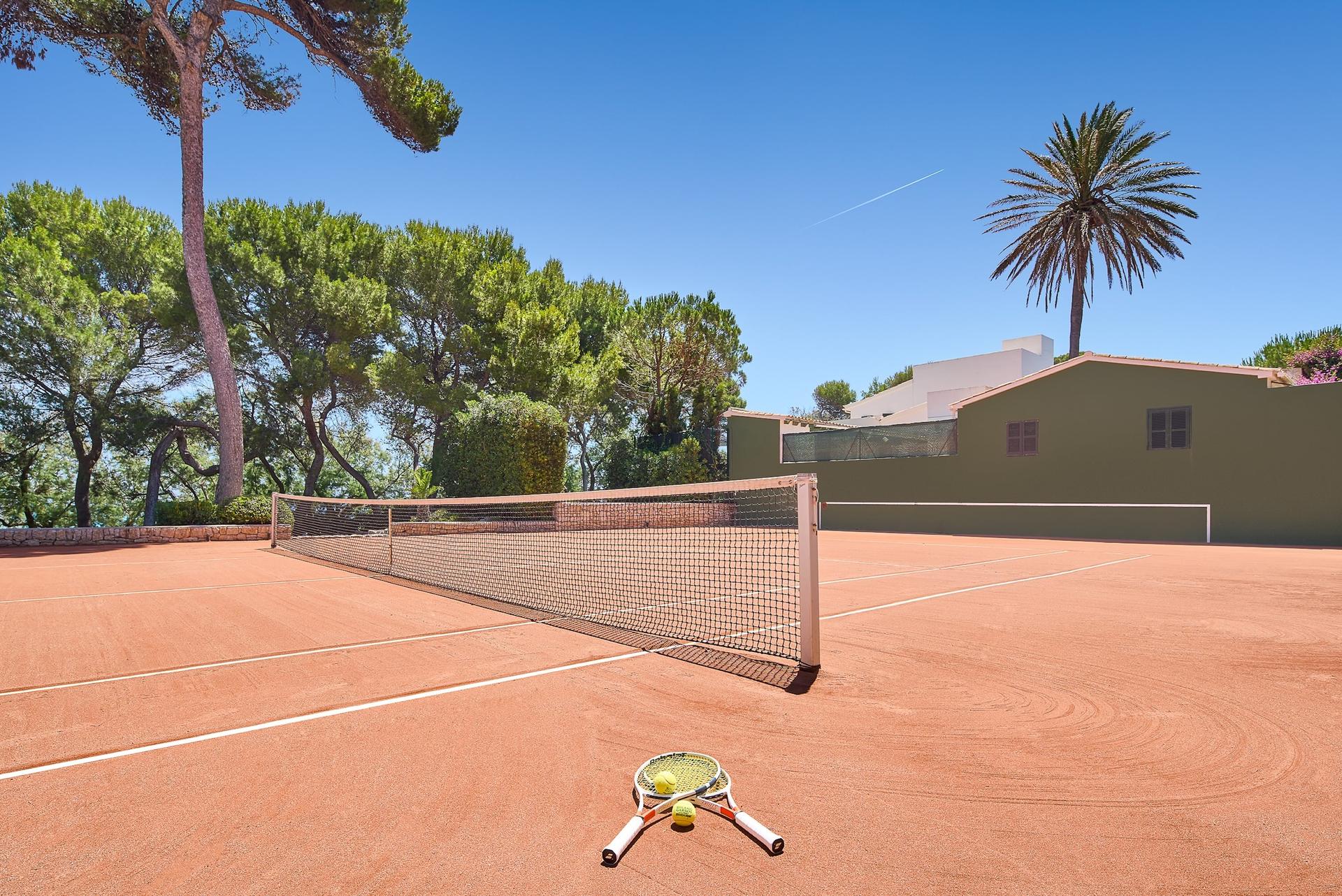 El área exterior está diseñada tanto para el relax como para la diversión activa. Además de la piscina privada con su zona de solárium, la propiedad cuenta con su propia pista de tenis privada, lo que permite disfrutar de un partido al aire libre en familia. El exterior también ofrece un porche sombreado y una zona de barbacoa dedicada, ideal para largas y relajadas cenas al fresco bajo las estrellas.