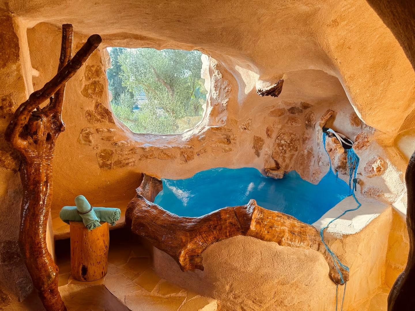 La piscina natural de agua salada (15 m x 4 m) se complementa con una comoda ducha. El oasis del estanque rosa, rodeado de palmeras y con una silla colgante, ofrece un retiro pacífico, mientras que la esquina del gimnasio equipado satisface las necesidades de fitness, con saco de boxeo, barras y otros equipos básicos de entrenamiento. The Root House no es solo un lugar para vivir, sino un estilo de vida que combina la sostenibilidad y la comodidad, y es un verdadero ejemplo de cómo se puede crear un hogar autosuficiente y ecológico.