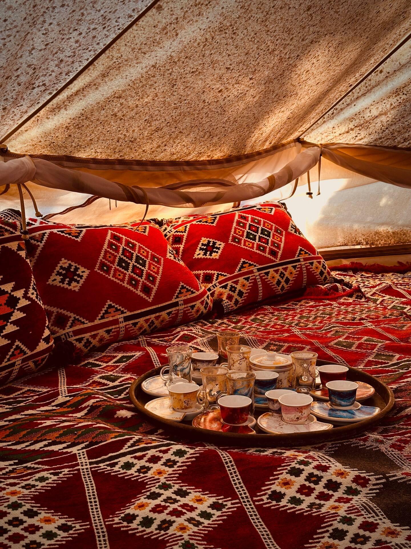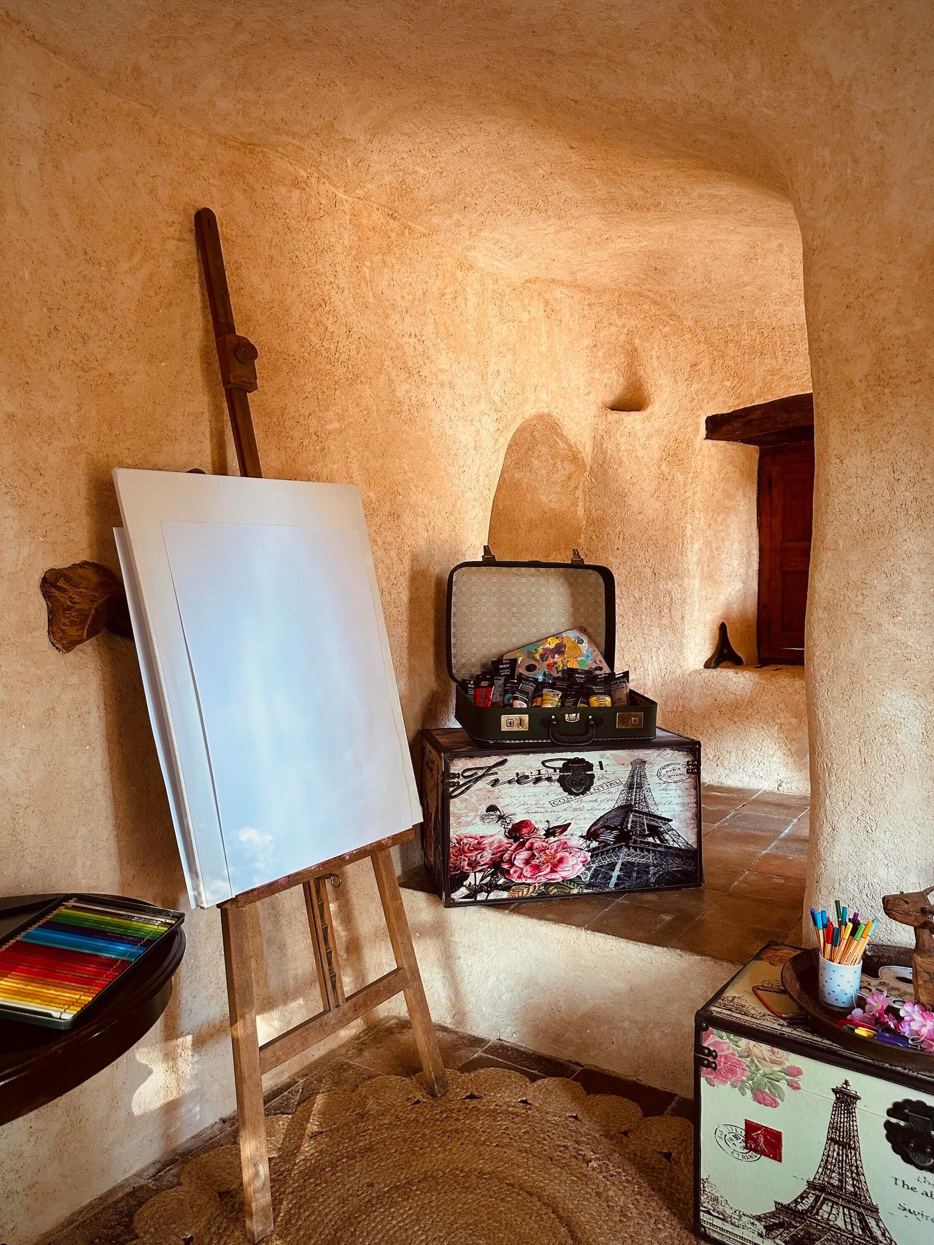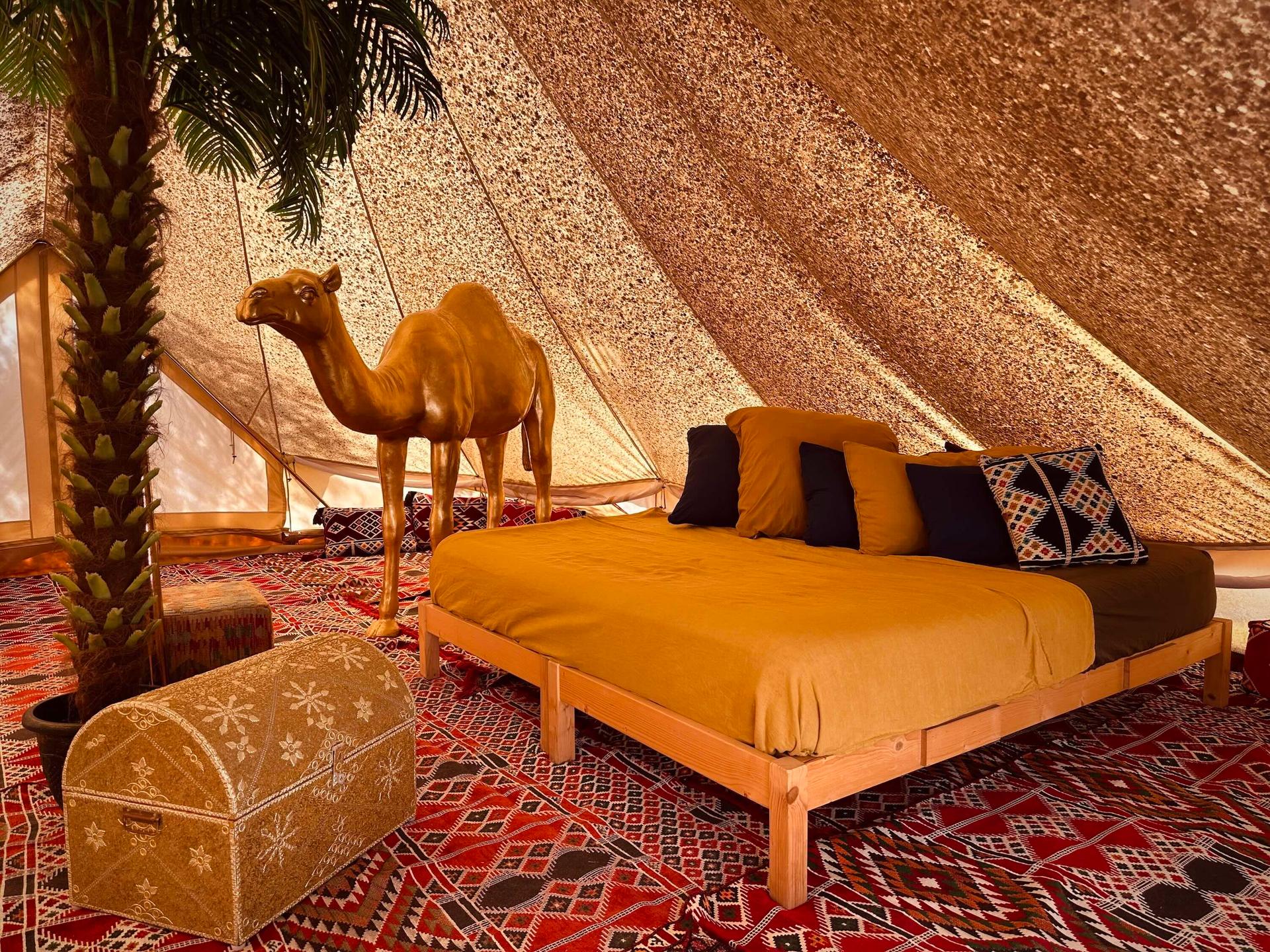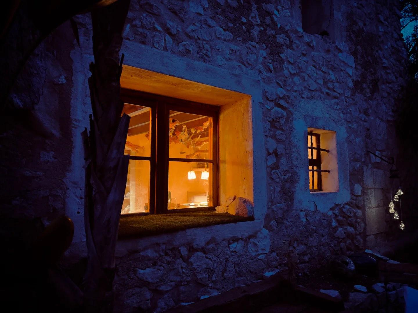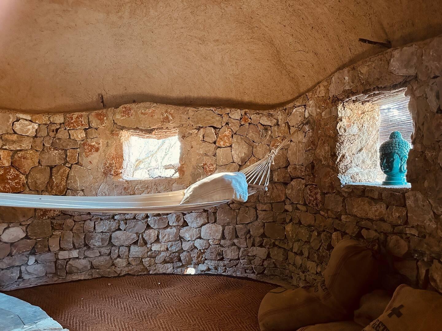 Los exteriores revelan la belleza de los amplios espacios de la propiedad. Una lujosa tienda de glamping de estilo oriental, con su propia chimenea, es el lugar perfecto para meditar, recibir tratamientos de bienestar o simplemente relajarse en paz. Varias zonas de descanso, terrazas con asientos y una cabaña ritual diseñada para la reflexión.