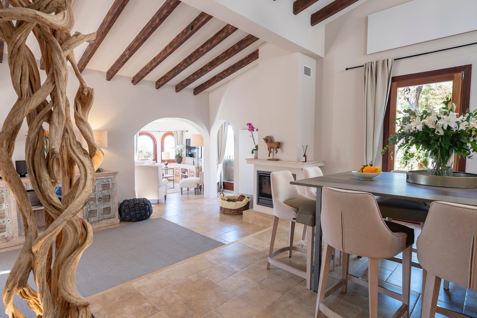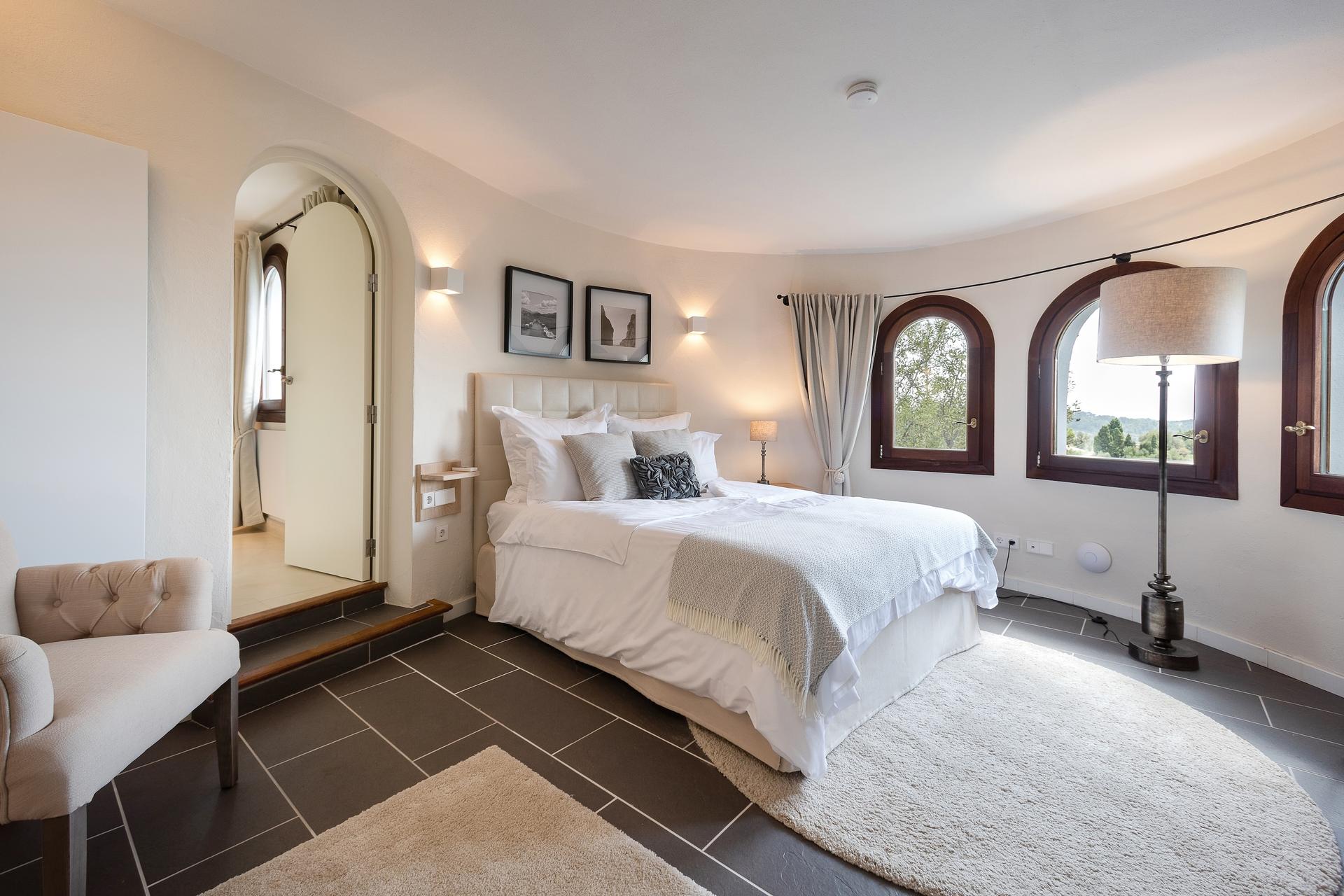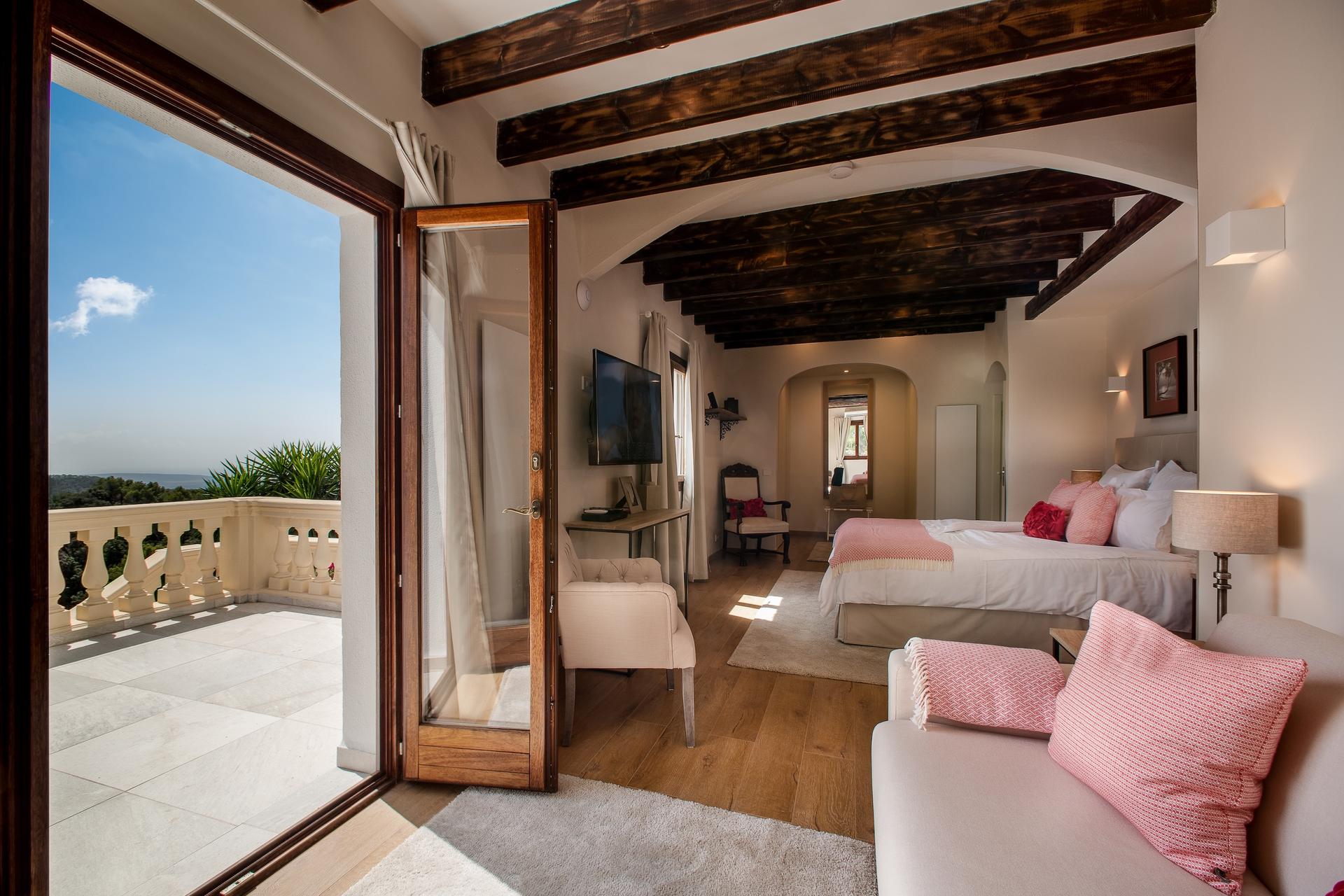 From every terrace, by the pool, from the bedrooms, or atop the turret, the views stretch across the Tramuntana mountains down to the southern coast and the tiny Malgrat islets. Simply breathtaking.