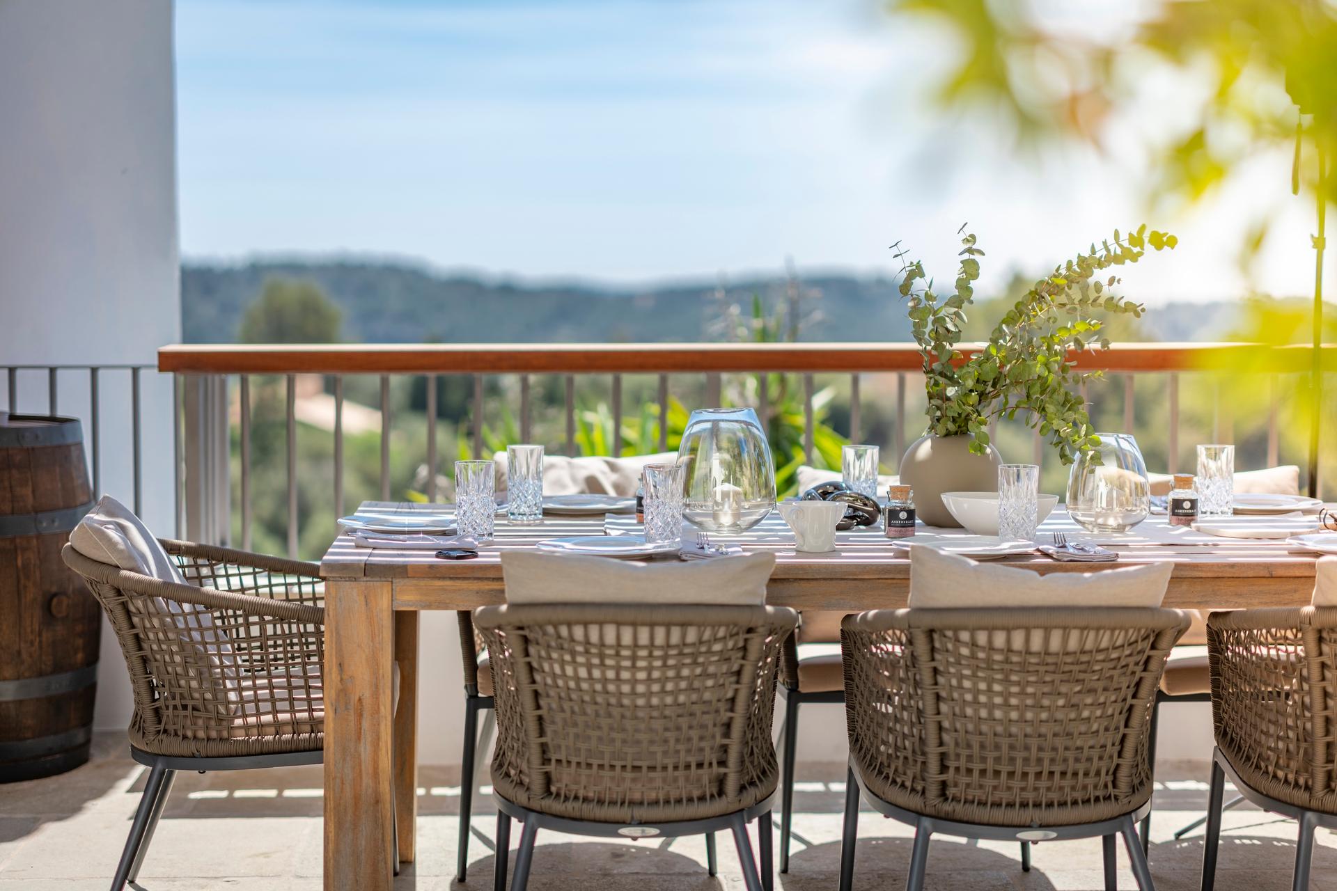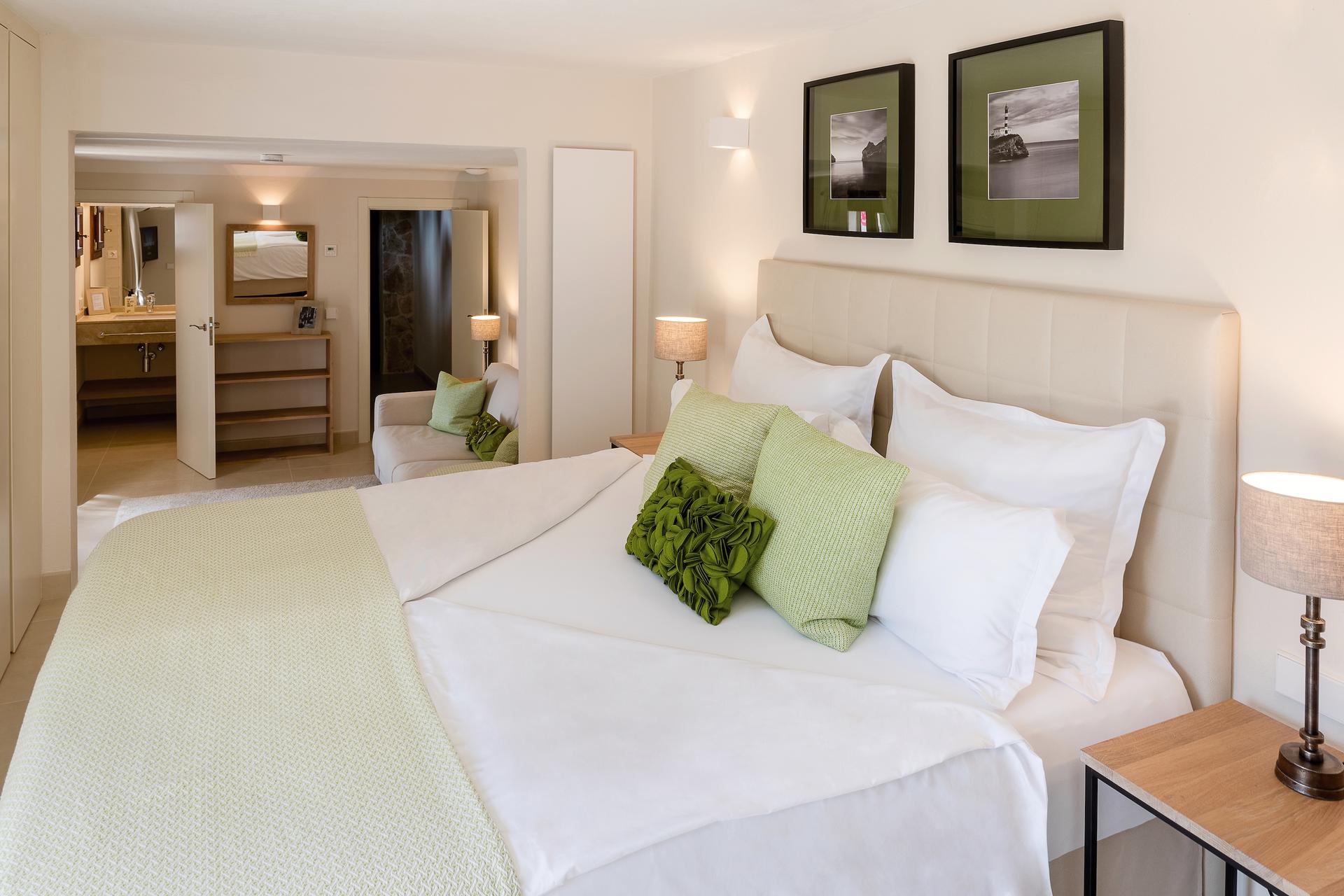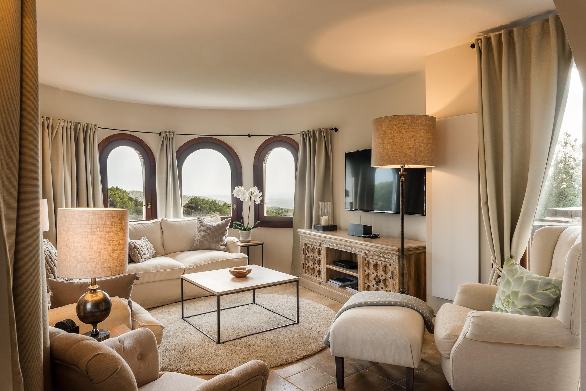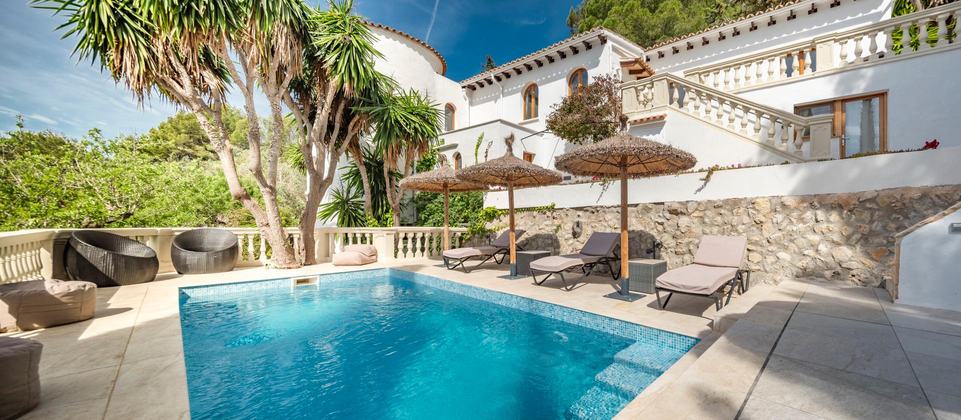 From every terrace, by the pool, from the bedrooms, or atop the turret, the views stretch across the Tramuntana mountains down to the southern coast and the tiny Malgrat islets. Simply breathtaking.