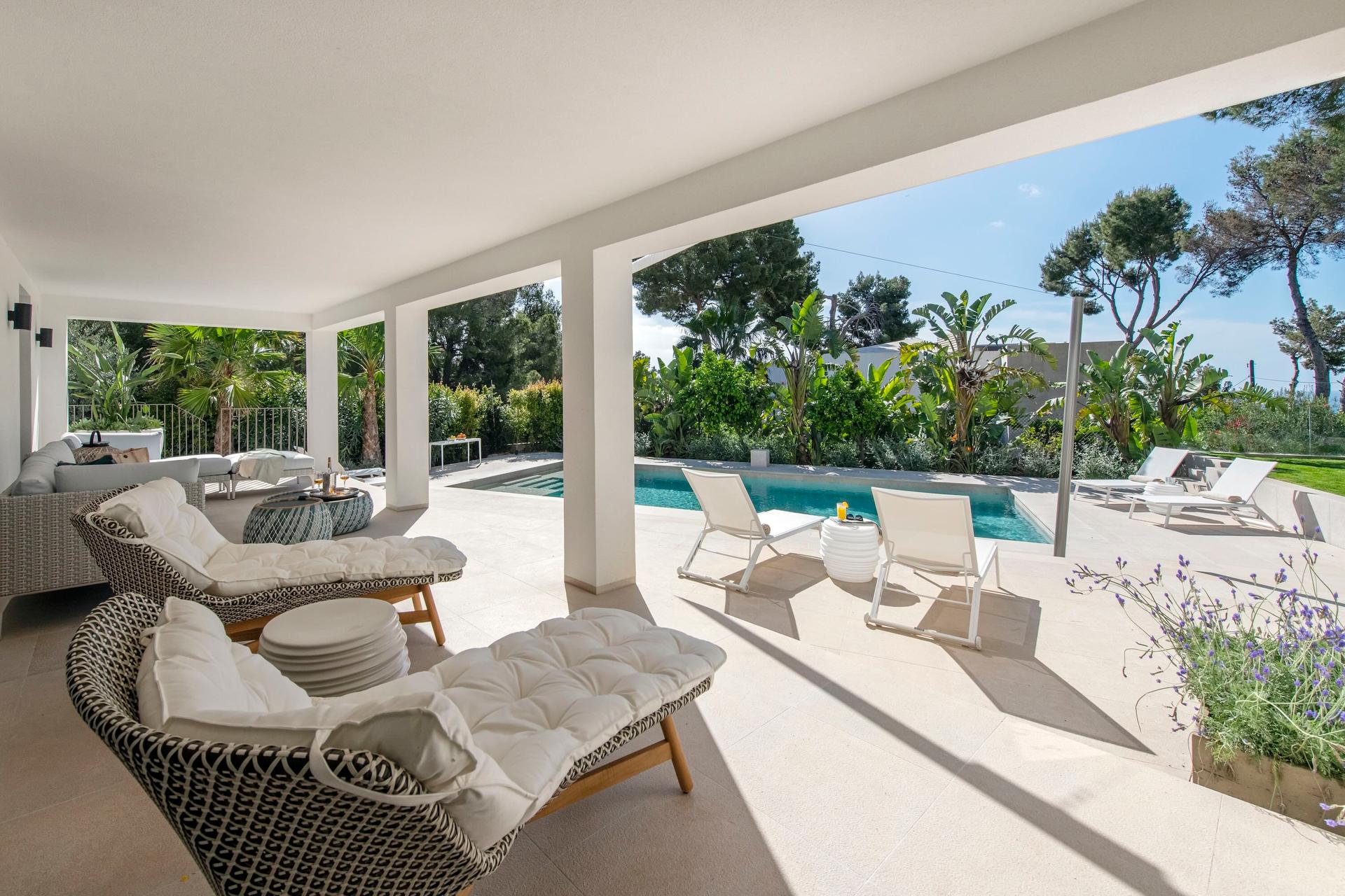 Perched on the sun-drenched hillside of Costa d’en Blanes, Villa Riviera Mare invites you to experience light, space, and the effortless elegance of Mediterranean living. Just moments from the prestigious marina of Puerto Portals, this contemporary villa perfectly captures the essence of coastal Mallorca, a harmonious blend of refined design, sea breezes, and tranquility. With 280 square metres of living space on a 1,000-square-metre plot, Villa Riviera Mare comfortably accommodates up to six guests plus babies and toddlers. Its prime location, only five minutes from the golden sands of Portals Nous and the boutique-lined streets of Puerto Portals, and twenty minutes from Palma and the airport, strikes the perfect balance between seclusion and sophistication.