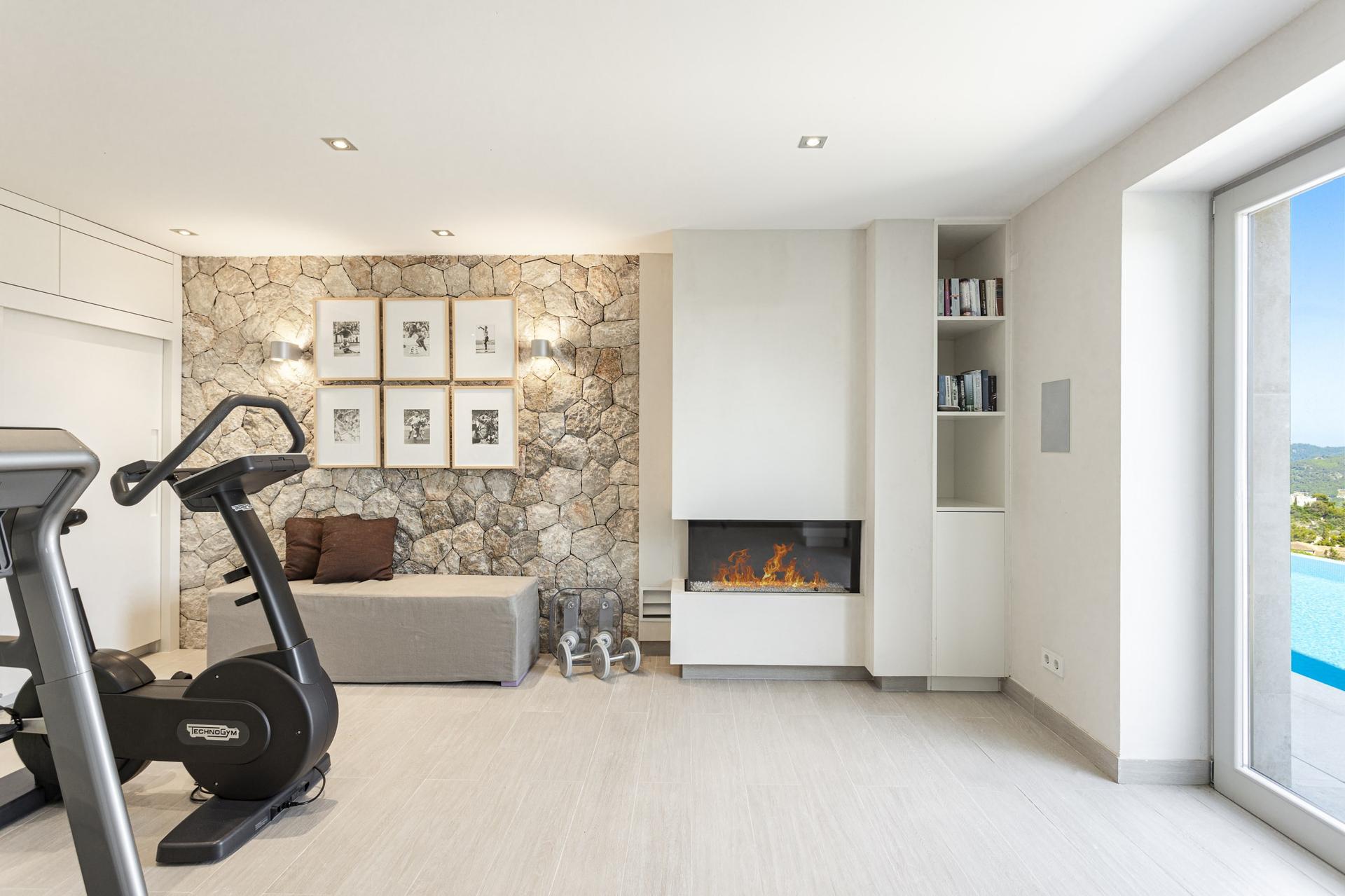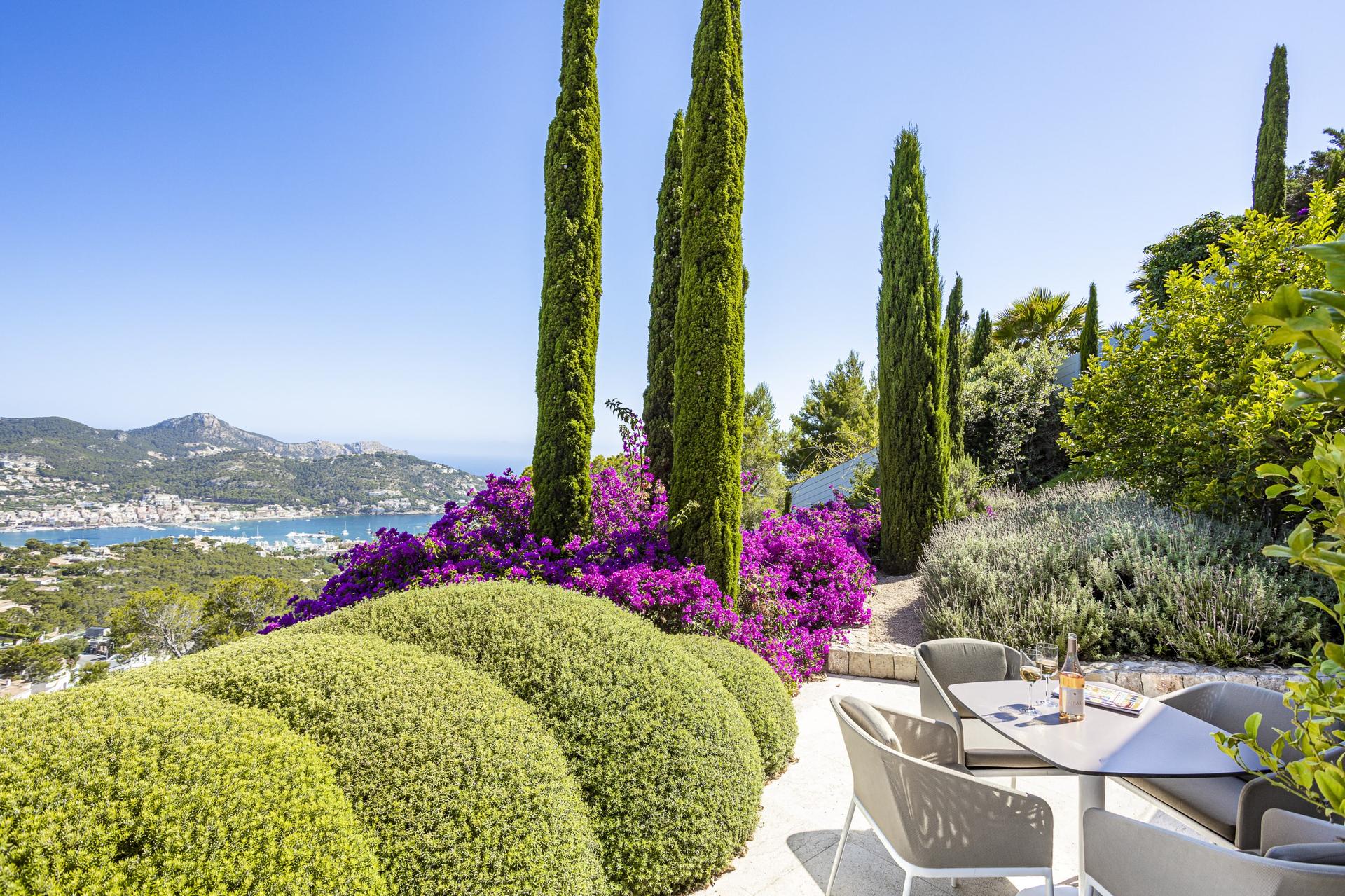 A gym room awaits fitness enthusiasts, while the numerous terraces offer breathtaking views of Puerto de Andratx, perfect for enjoying the beauty of the turquoise bay.